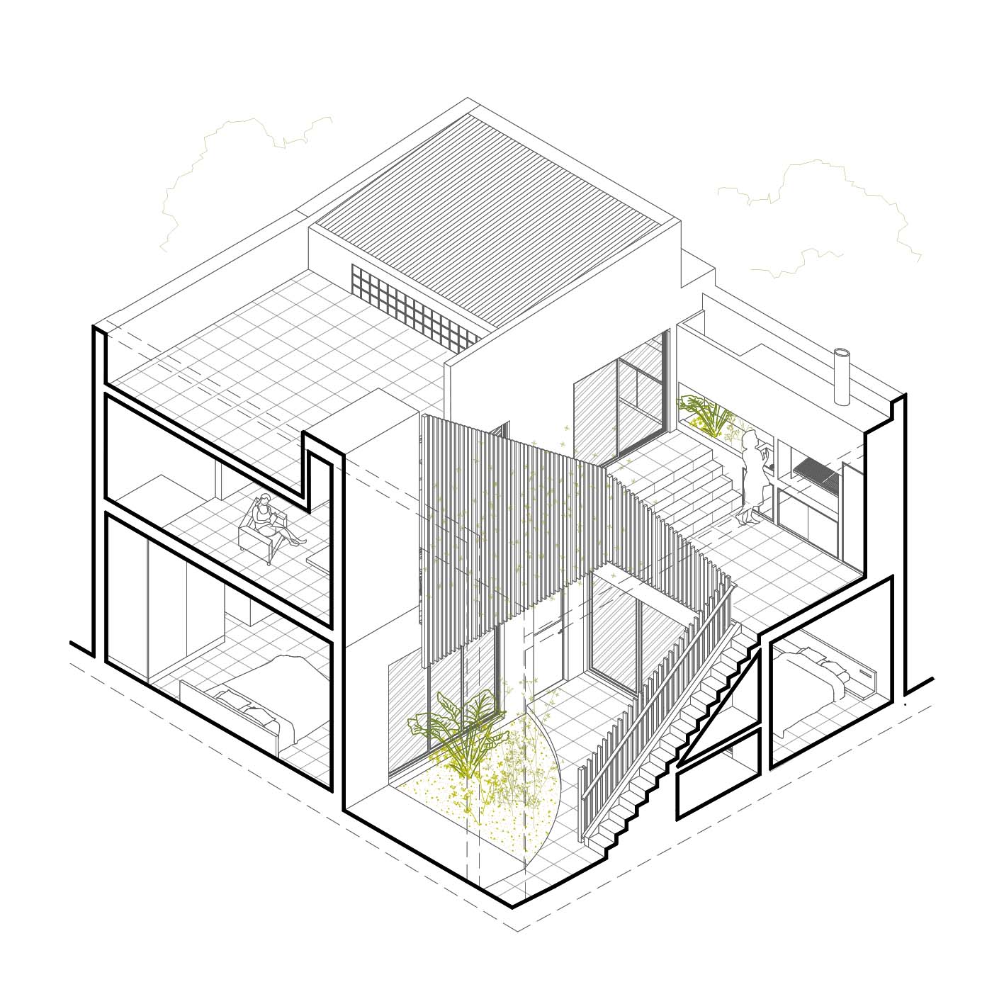 Conservando mucho de la preexistencia, generamos un proyecto que tiene como centro la circulación y la funcionalidad y predisposición para recibir muchas visitas de manera transitoria o permanente .