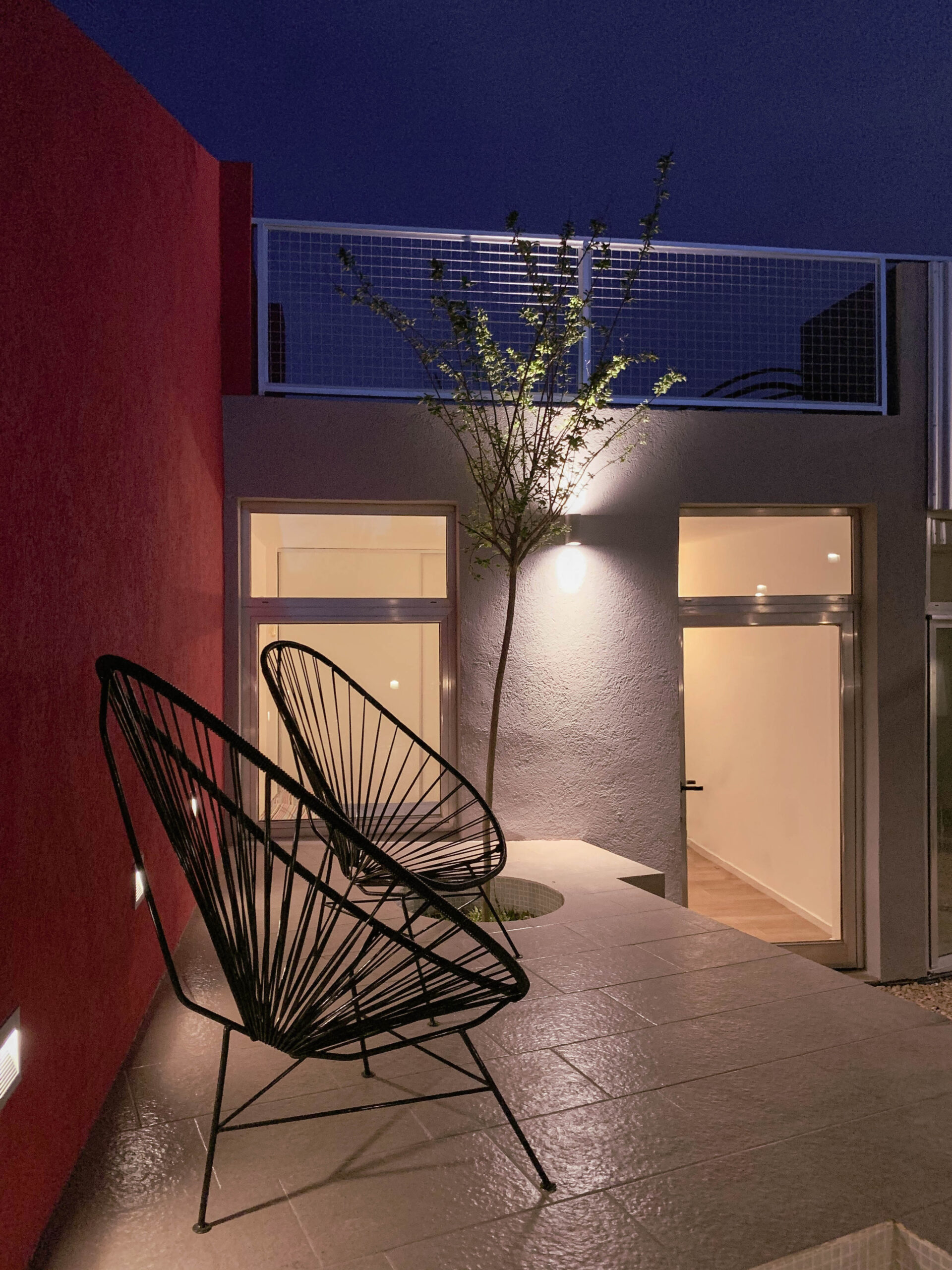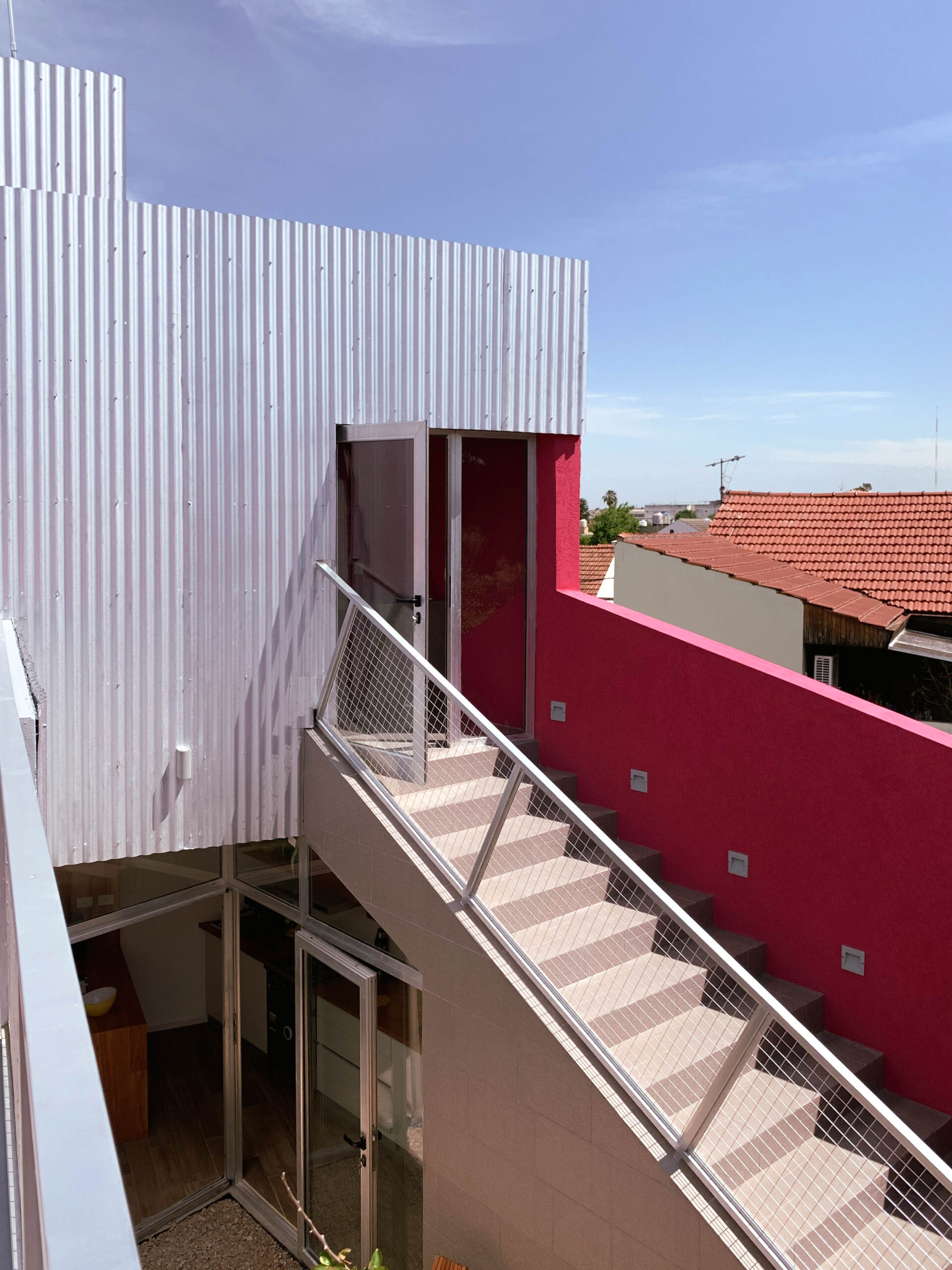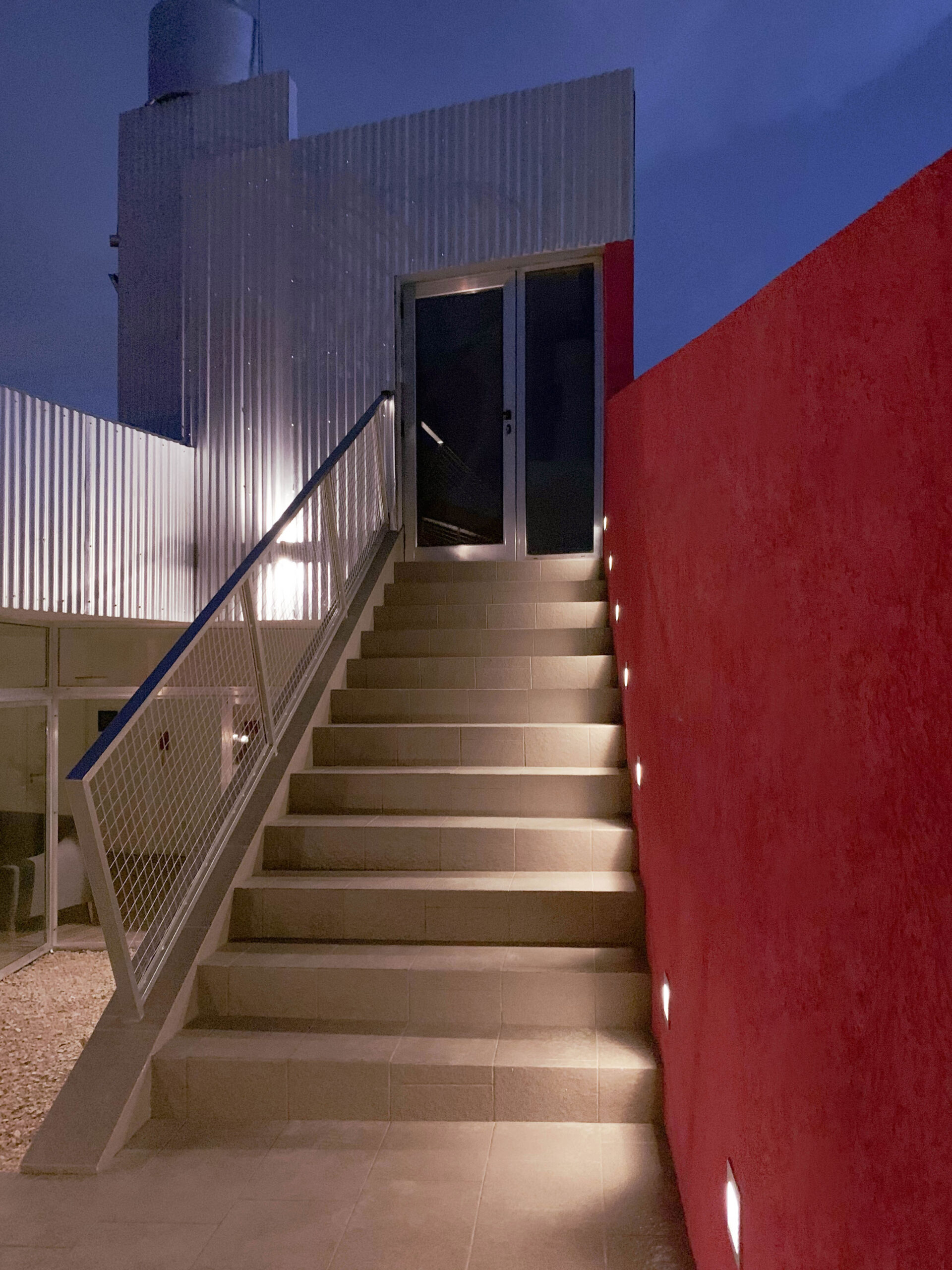 La idea principal fue entonces, la de generar un vacío individual, que pudiese vincular el exterior con el interior de una manera homogénea. Este gesto se ve potenciado a la vez, por una gradería que, en combinación con la escalera, resulta en un recorrido entretenido y cómodo hacia la terraza.