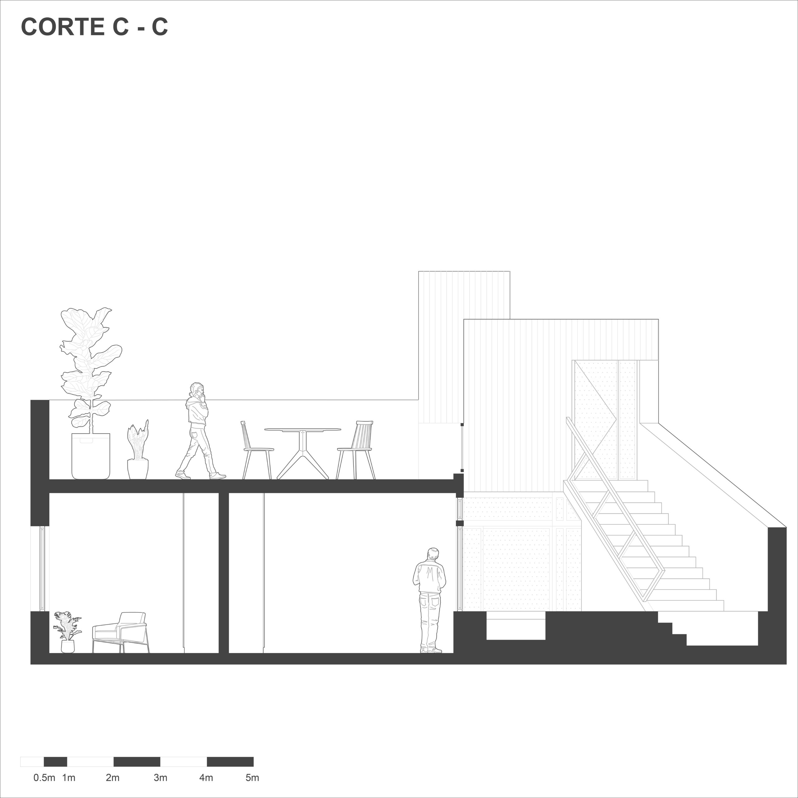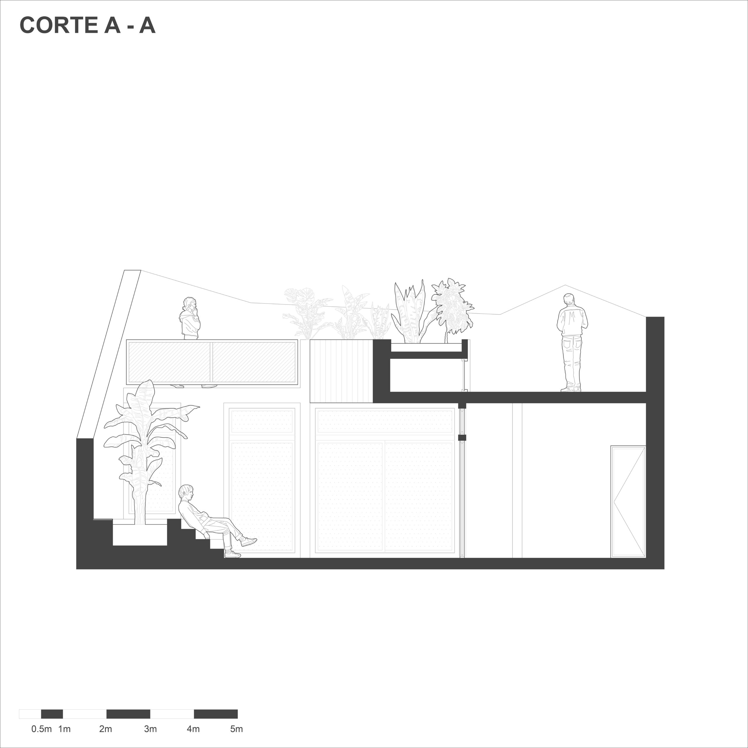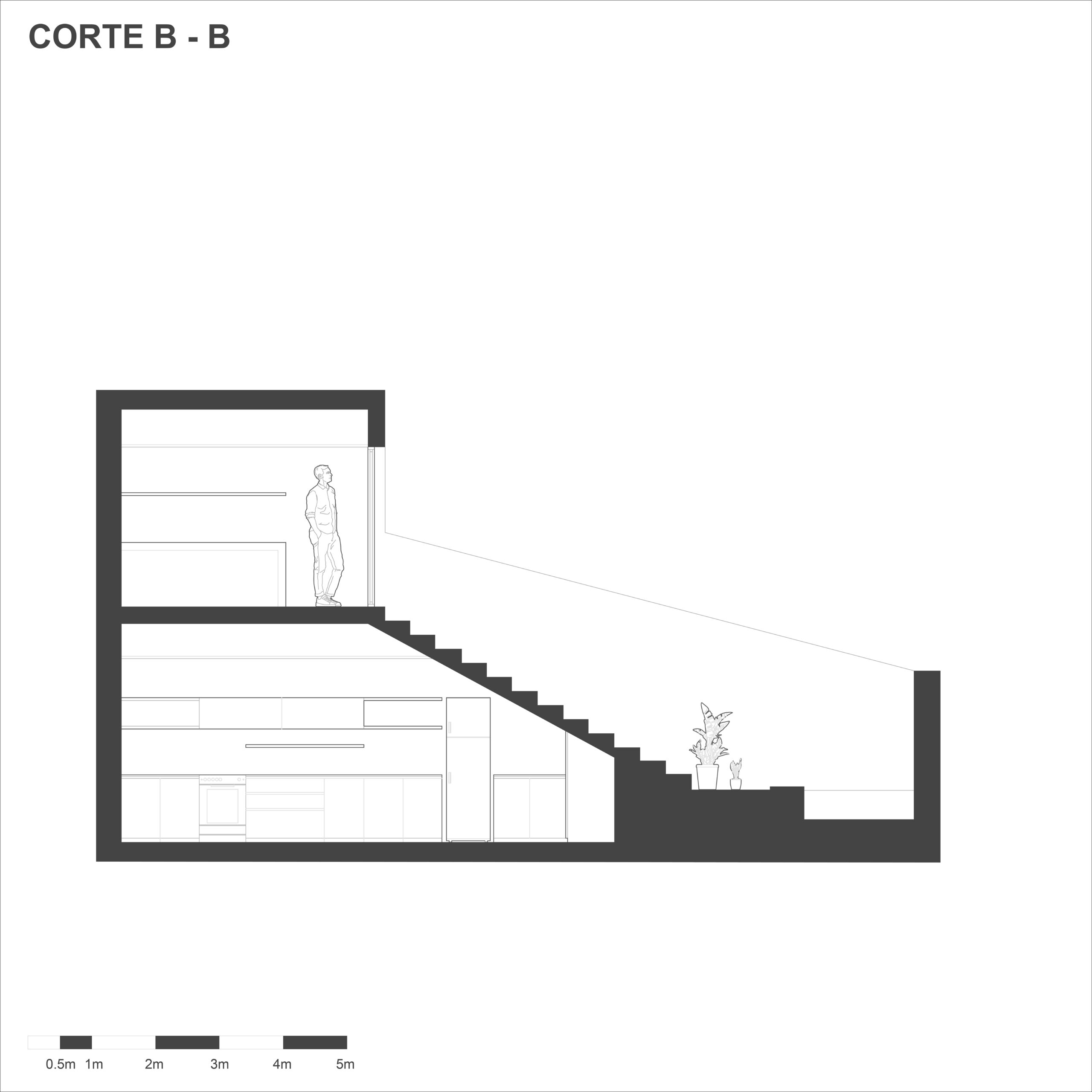 La idea principal fue entonces, la de generar un vacío individual, que pudiese vincular el exterior con el interior de una manera homogénea. Este gesto se ve potenciado a la vez, por una gradería que, en combinación con la escalera, resulta en un recorrido entretenido y cómodo hacia la terraza.