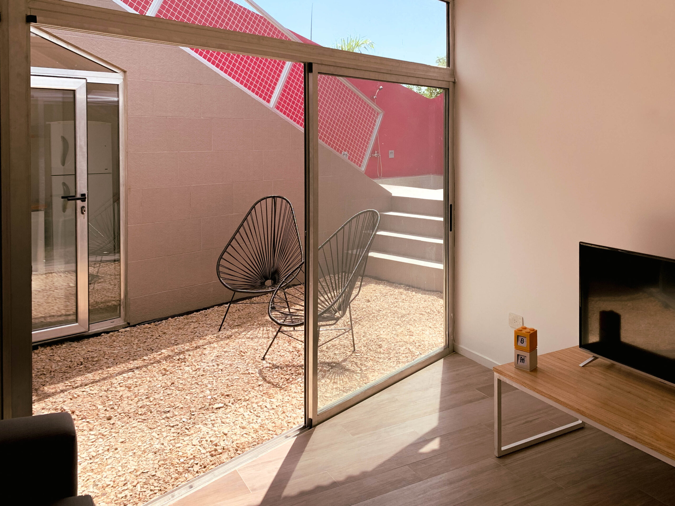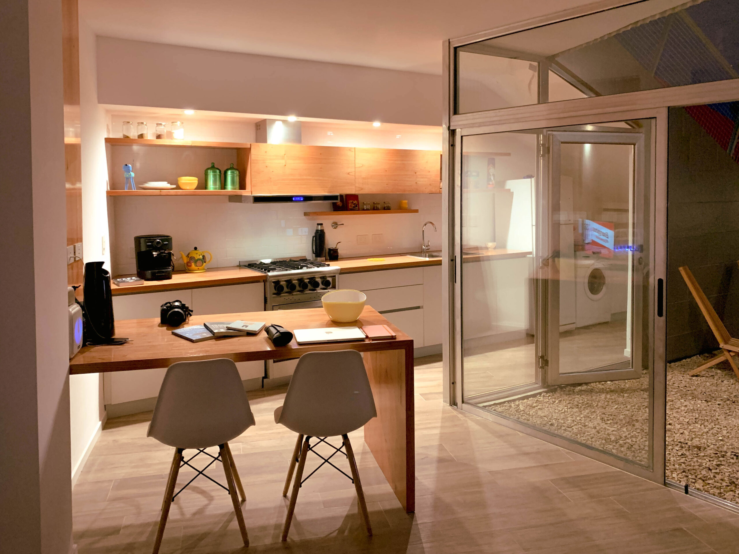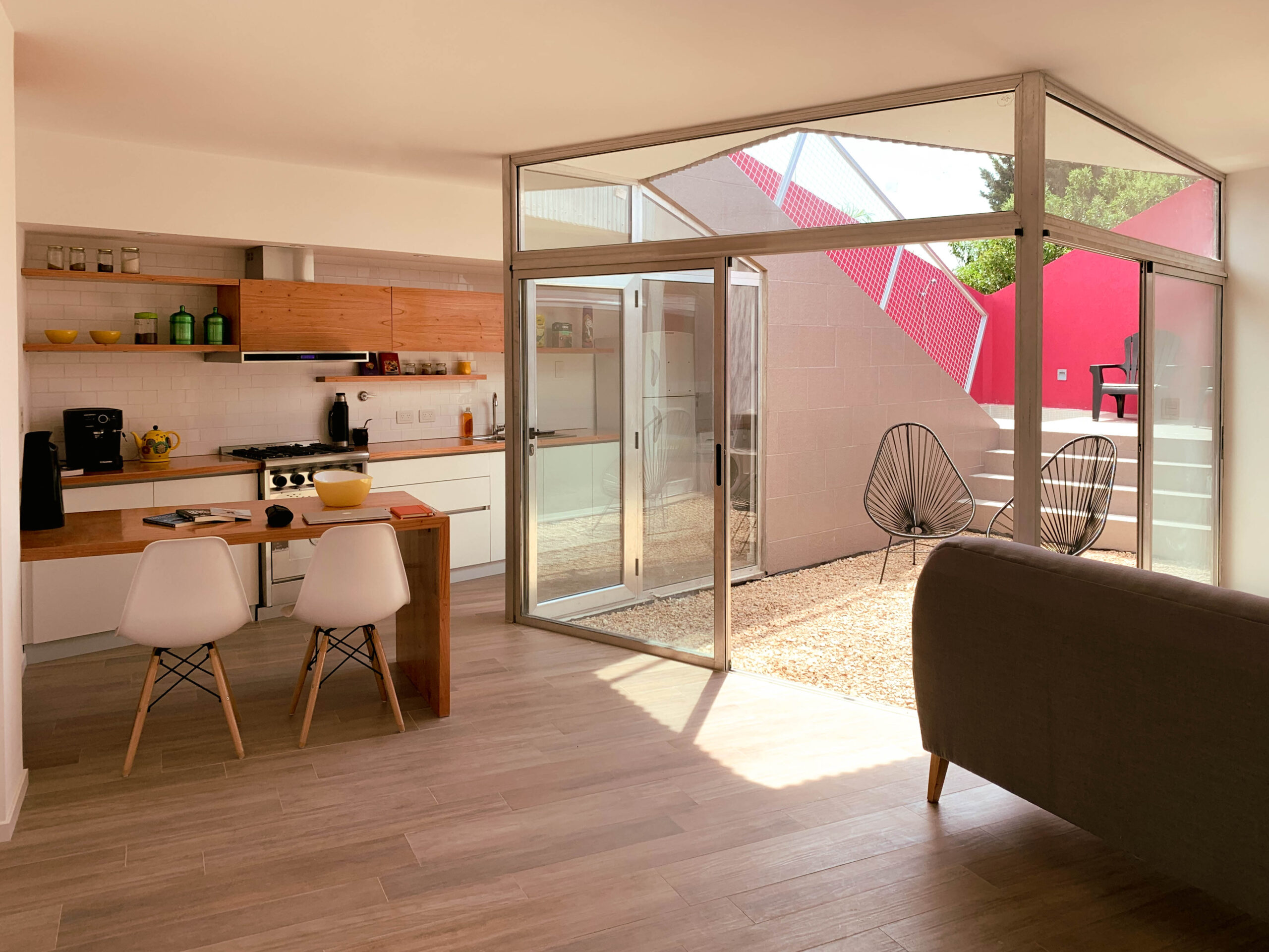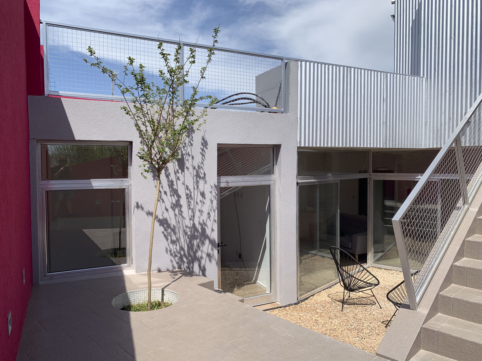 El proyecto se basa entonces en la reforma e integración de dos unidades mínimas, en un único PH al fondo, que basado en el juego de cóncavo y convexo, con la combinación de diversos gestos, resultan en un ambiente homogéneo que vincula interior e exterior de una manera agradable y consiente.