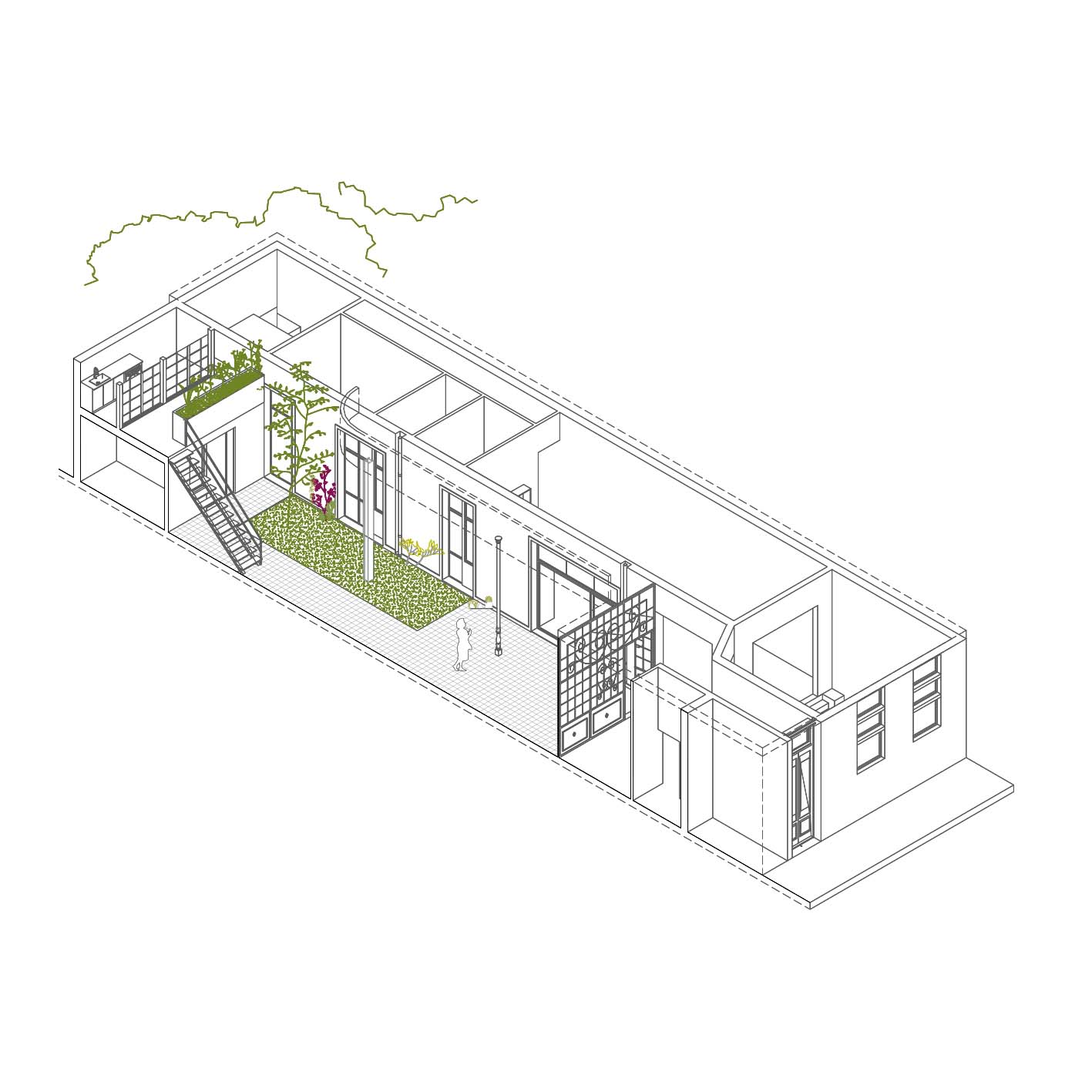 Convertimos este PH de 6 habitaciones en un bello hogar. Tratando de conservar lo máximo posible de la preexistencia, poniendo en valor el patio y el hall. Convertimos el local comercial al frente en una amplia cocina comedor y a las habitaciones altas les ganamos unos grandes espacios de guardado.